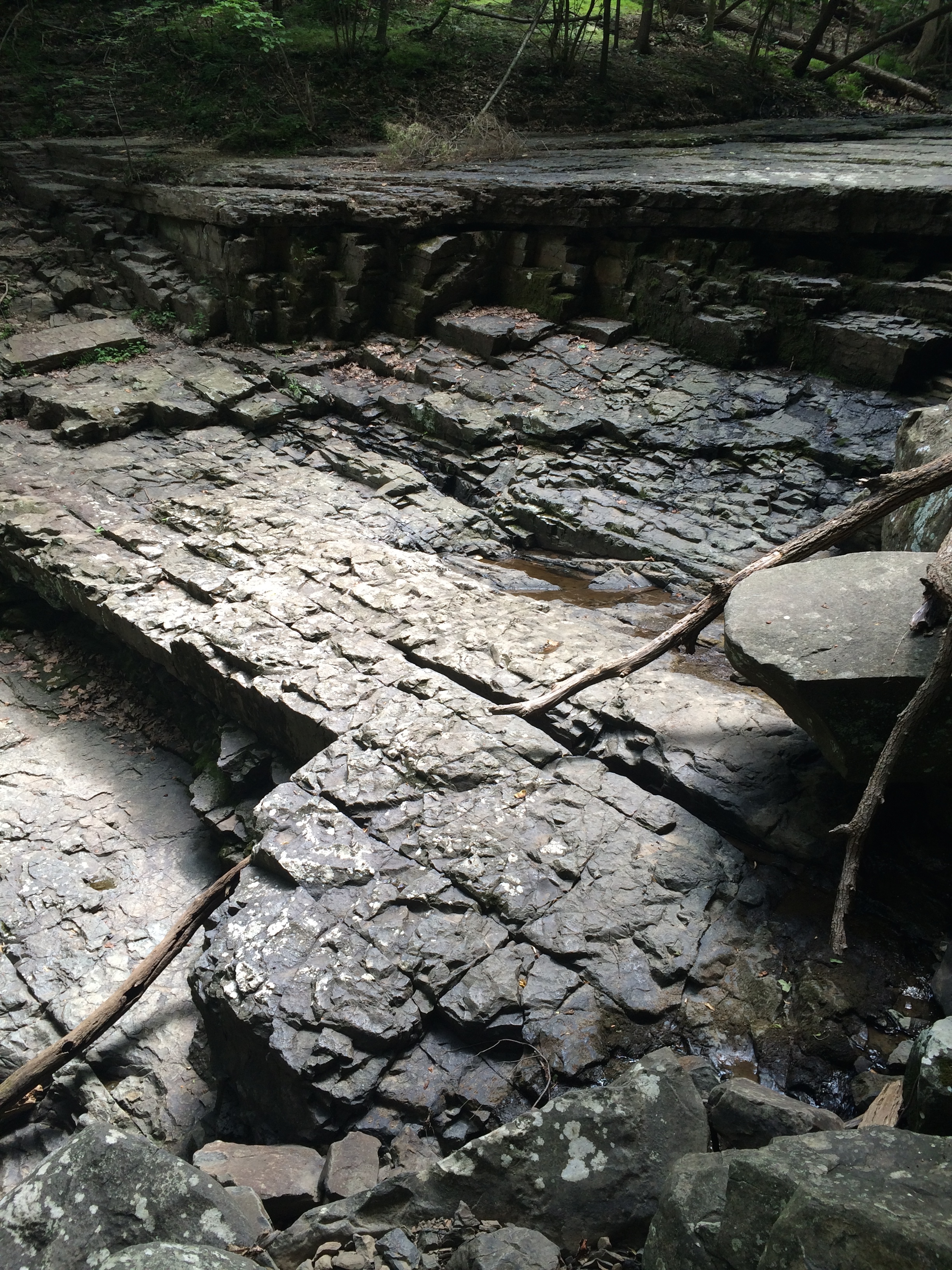 After exploring the boulder field, my friends (Janine and Sam) and I went in search of the alleged “largest waterfall” in Bucks County, which was also supposed to be at Ringing Rocks Park. We don’t know if we found it or not, but the strange rock formations we came across made up for it.